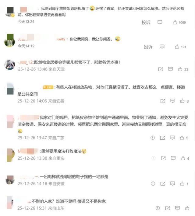 男子称“实在被逼的没办法了才会这样 ”,邻居则认为“门口放鞋架正常,没挨男子家”。